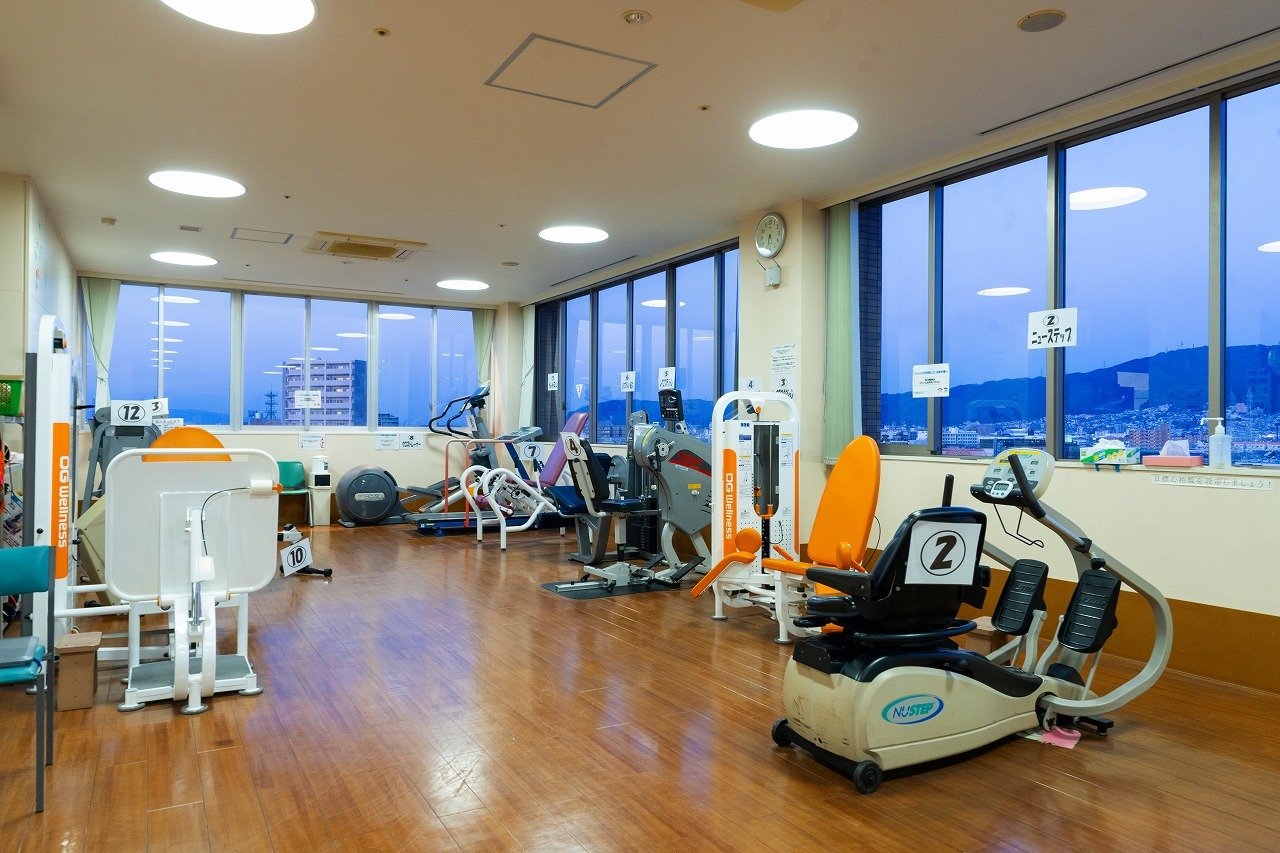 6階のリハビリテーションセンターには、多くのマシンや運動機材を用意したフットネスエリアがあります。